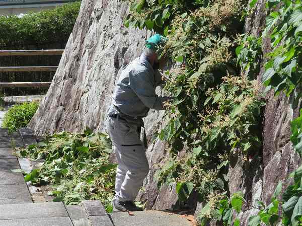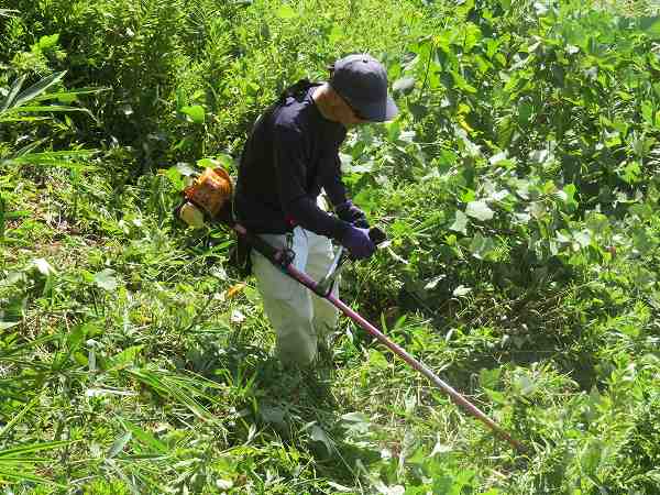 (ホームページ管理者のミスで撮影した作業風景の写真を消してしまいました。繁茂した草の中での作業風景を掲載できず申し訳ありません。)