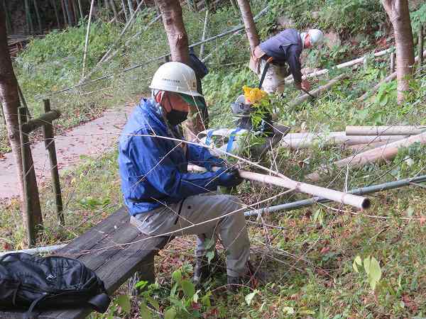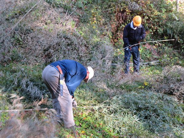 暑かった夏のせいか雑草の繁茂状態はすごく 草刈り機・のこぎり・鎌での整備です。不要竹の伐採もお行いました。