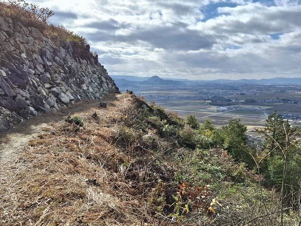 今日は15人の参加で出丸の整備をしました。台地は草刈機での除草、石垣下は常緑雑木が視界を遮っている為その除伐 急斜面のシダ原の中をロープを使っての作業。見違える程に綺麗になった。