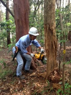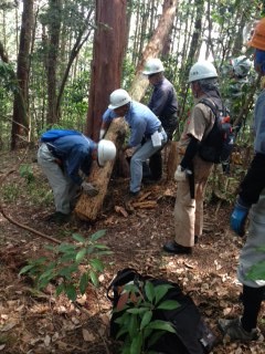 チェンソー2台フル稼働させて、随分と明るく見通しが良くなった。14時50分で終了し15時に下山する。参加者8名。