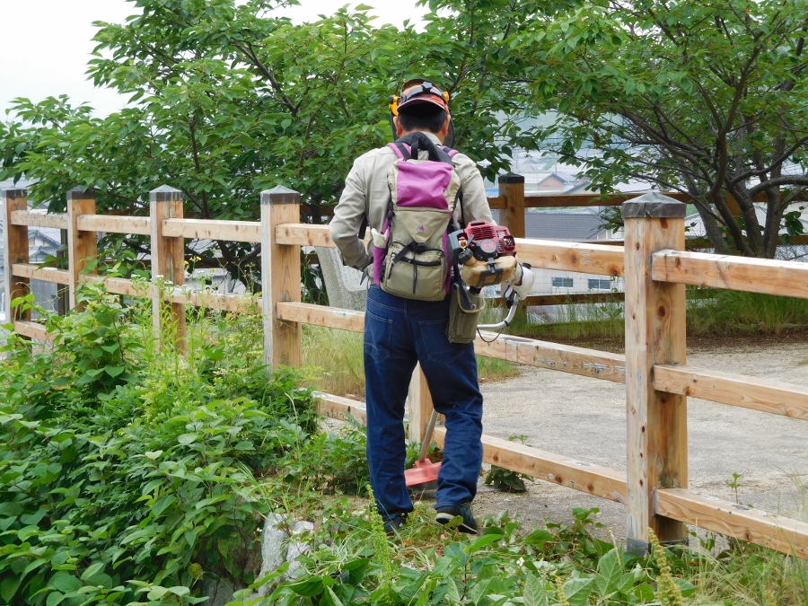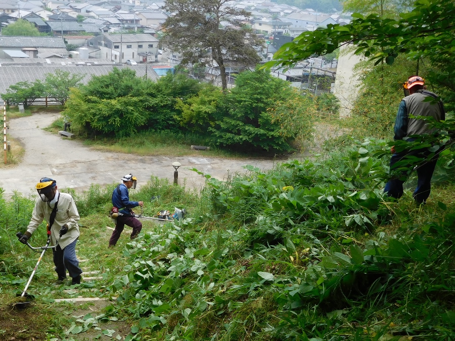 この日は八幡山東公園付近の整備を行いました。久しく手をつけていなかったため 雑草は腰のあたりまで伸びていてやりがいのある作業でした。草刈機9台フル稼働で 途中10時過ぎに休憩を取り11時過ぎに作業終了としました。作業後は見違えるばかりにスッキリとしました。
