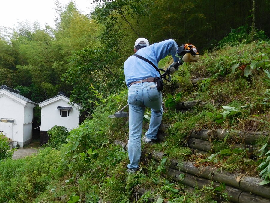 9.刈り取った草の整備も一苦労: