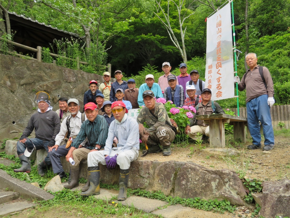 この日の活動は前回の続きで 直登階段上部のの八幡公園側の整備です。草刈り機は10台フル稼働し 機械で処理できないところは鎌での整備となりました。作業場所は広範囲となりましたが途中休憩では一ヶ所に集まりエネルギーとたっぷりの水分を補給。後半の作業に備えました。11時過ぎに作業終了し管理棟への帰途に。そこで解散となりました。