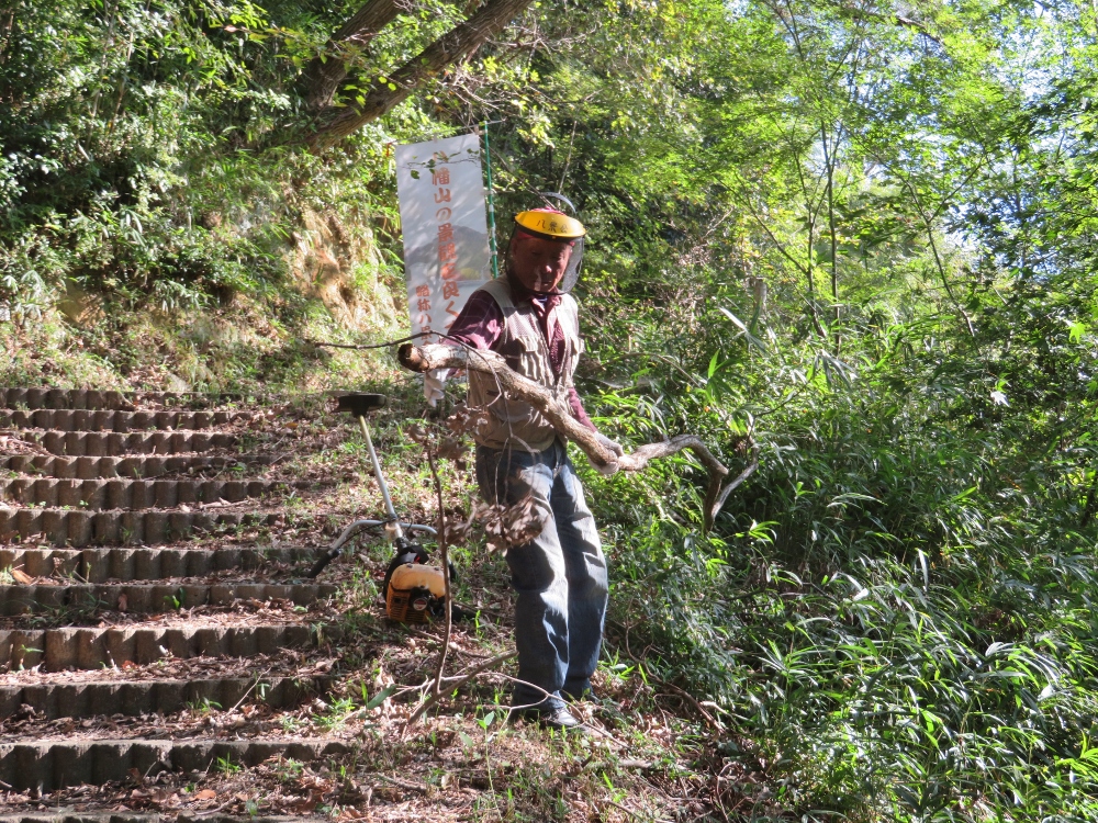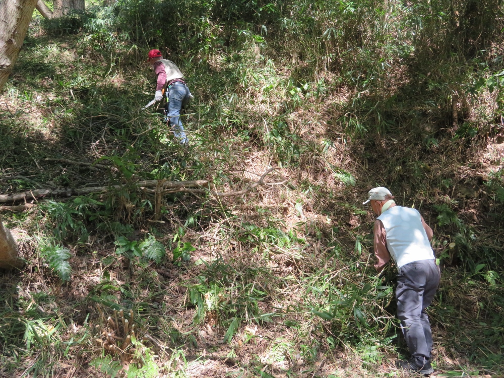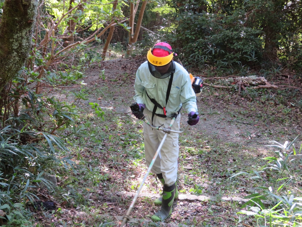 草刈機による除草、不要竹の伐採、高く伸びたアジサイやツツジ等の剪定・伐採、枯れ枝の整備などです。
