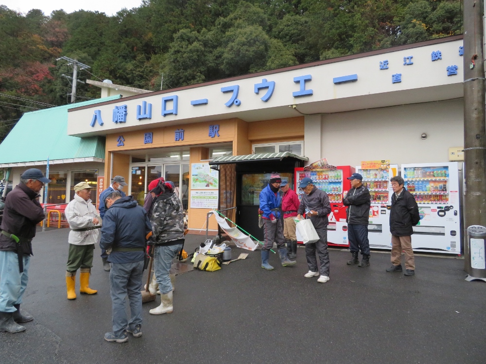 ロープウエイ駅前に集合し頂上へ。頂上駅から竹を運搬し西の丸で朝のミーティング。今日の作業説明が会長よりあり作業開始。10時すぎには西の丸を完了し北の丸へ移動。11時半に作業終了しました。