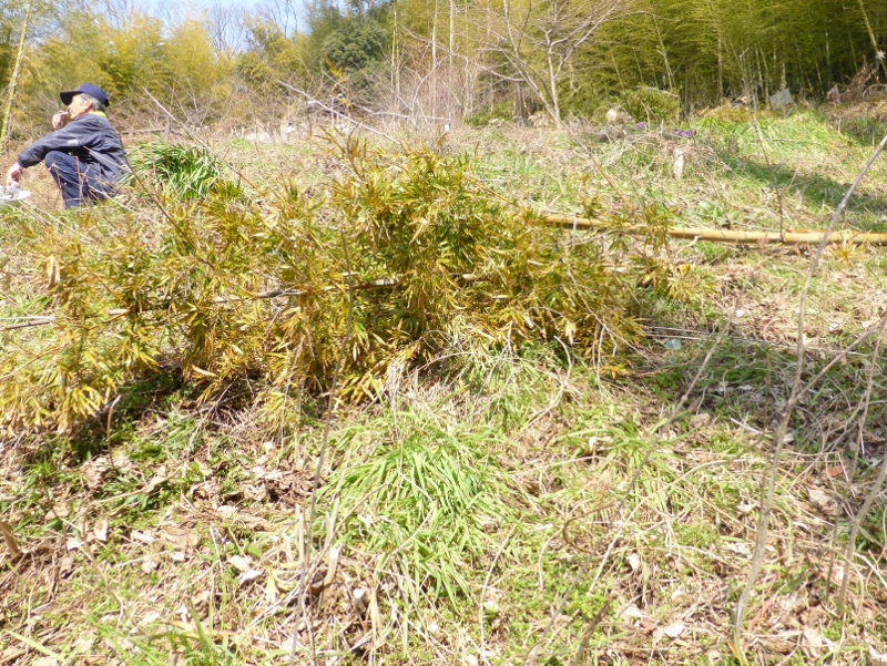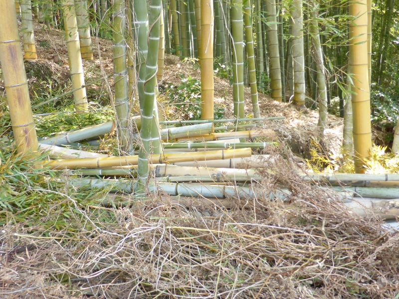 9.切り倒し積み上げた竹と刈り取った草:140312廃竹