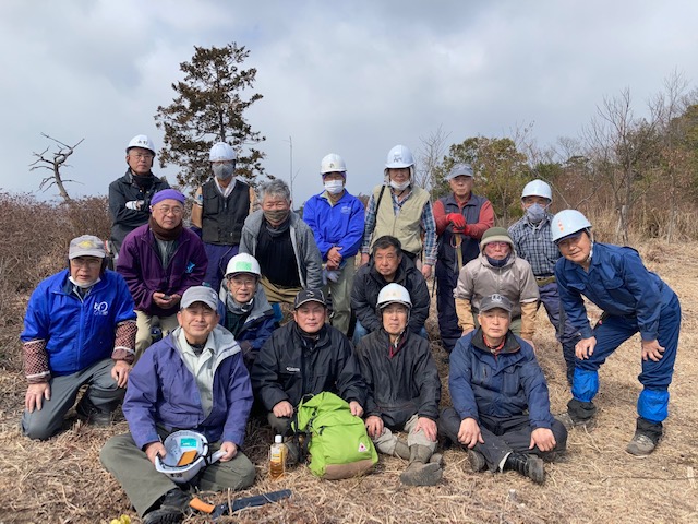 今回の作業は出丸石垣の整備で、3班に分かれて、1班は西斜面側の雑木の伐倒、2班は北側の斜面の雑木の伐倒、3班は石垣南面の土の除去作業に取り組む。1班の成果は湖周道路からの眺望改善、2班の成果は長命寺港からもはっきり見える様に眺望改善、3班は街中からも、石垣が更に良く見える様になった。日中には雪もぱらつく中、皆汗をかくほどの作業内容。14時に作業終了し、14時30分下山する。