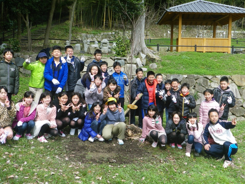 3月14日 先日に続き この日は 近江兄弟社学園小学校の卒業記念植樹会を実施しました。担任の三村先生に引率された35名が参加してくれました。八景会からは会長はじめ4名で対応。数年後にはきれいな花を咲かしてくれることと思います。