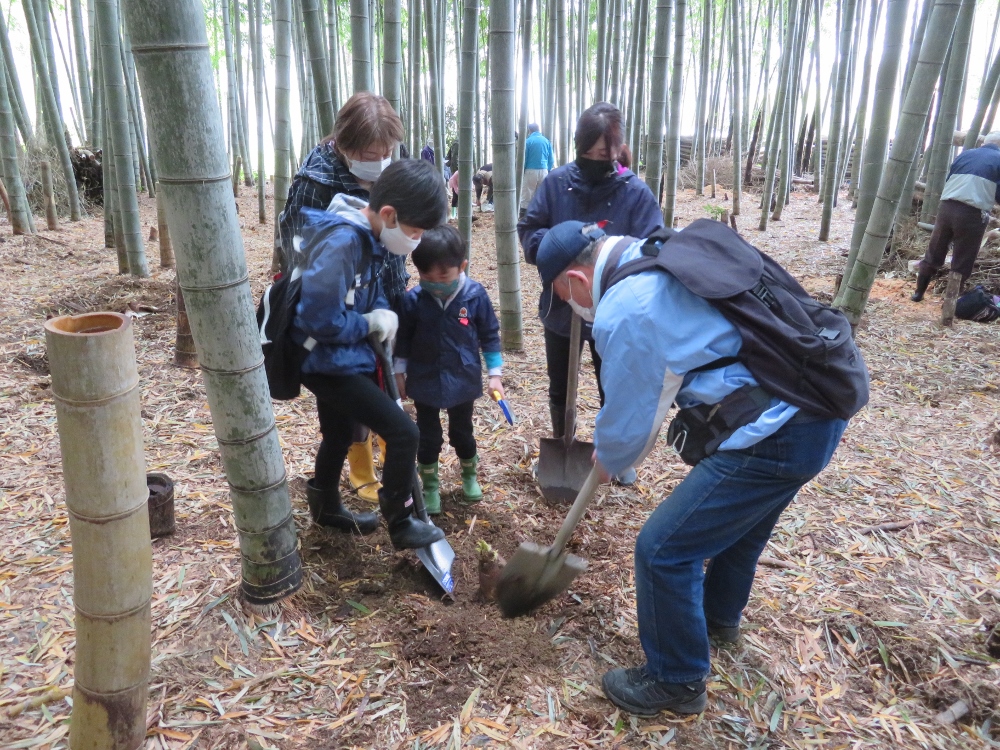通常4月29日の祭日に実施していた親子筍堀大会が雨のため順延となりこの日に実施となりました。