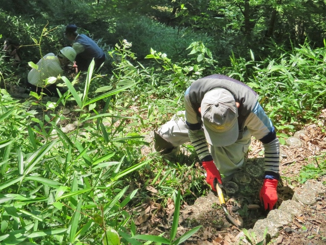 今回の活動は コナラ林の円形展望台周辺の整備です。笹竹が多く仮払機7台フル活動で階段の笹竹は鎌部隊の担当です。また不要と思われる広葉常緑樹の伐採もありました。10時頃に一度休憩を取り その後も作業を進め11時過ぎに作業を終えました。