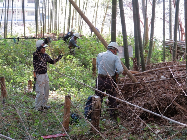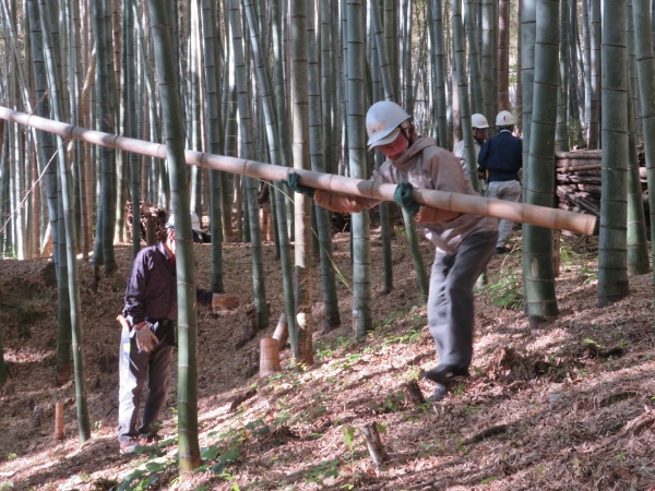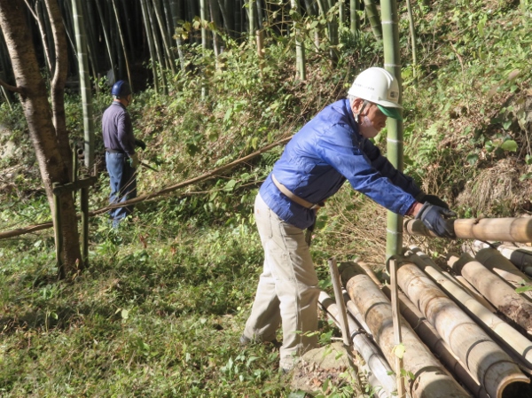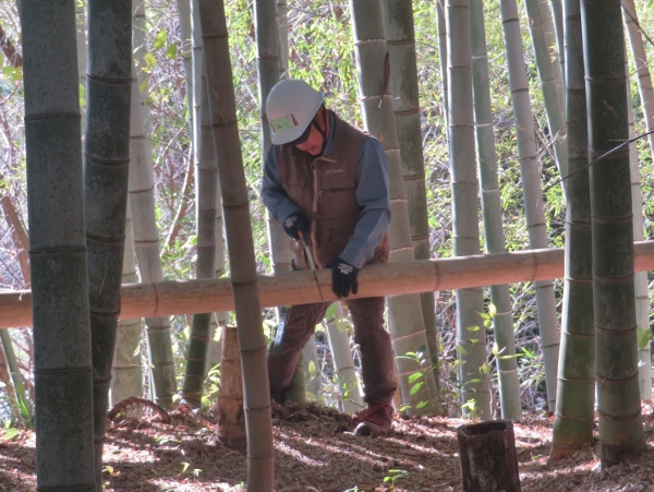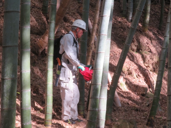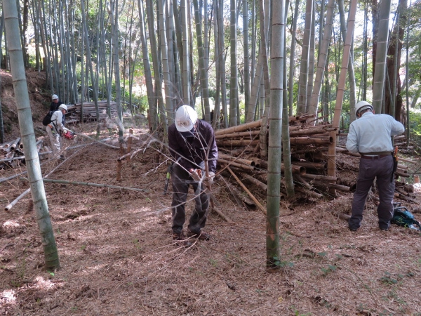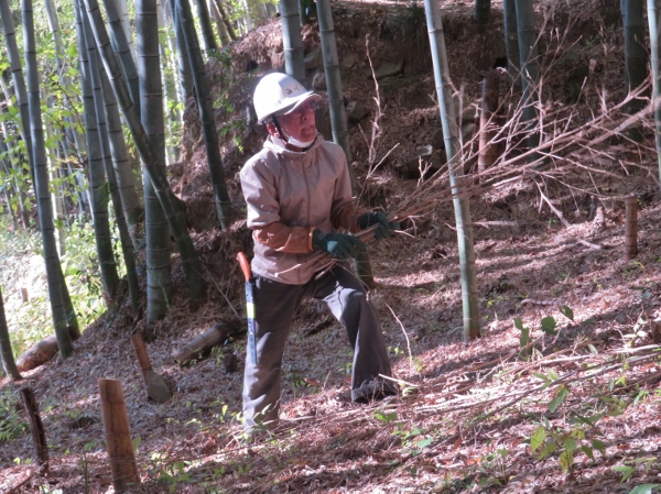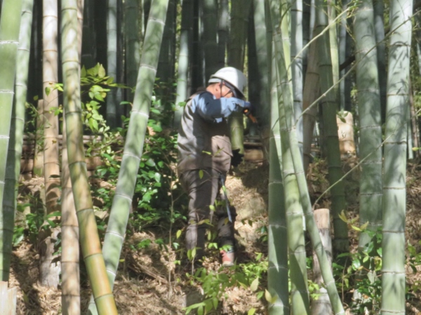 今日から竹林の整備に代わります。初日の今日は八幡公園西端の東屋山手の竹林の整備です。竹林手前の草地は草刈り機を使いきれいに。竹林はチェンソーと鋸を使い整備。枯竹が意外に多くあり、これらを伐倒・整備しました。途中10時頃休憩を取り 11時過ぎに作業終了となりました。