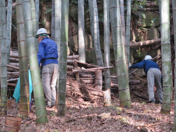 本日の作業場所は 大石垣上下の竹林の整備です。枯竹が意外に多くその整備に時間を取られました。