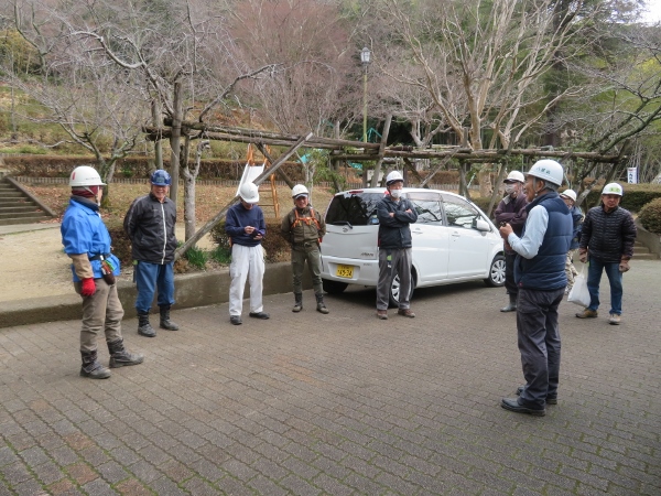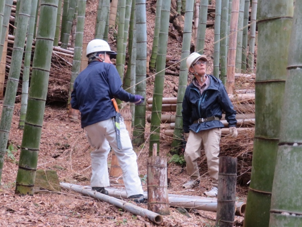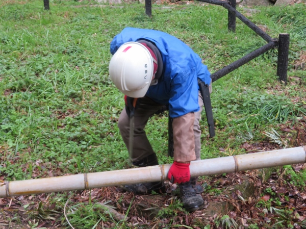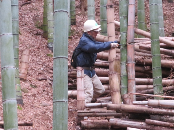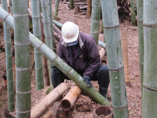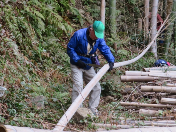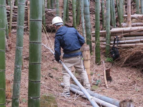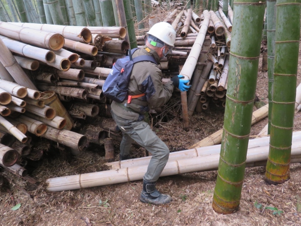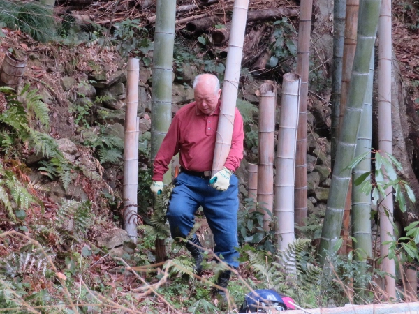 今回の作業場所は前回に続き西村太郎右衛門墓上部台地の竹林整備です。枯竹がまだ多く残っていて これらを伐倒します。