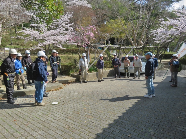 作業後 八幡公園で満開の桜の下 花見の宴を開きました。毎年この時期に開きますが満開の桜のもとで開くのは珍しいことでした。