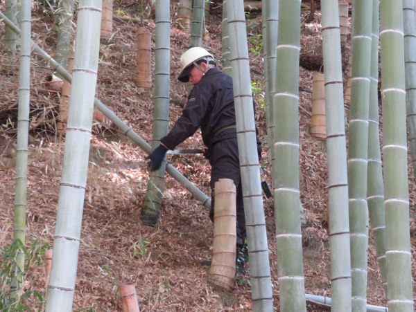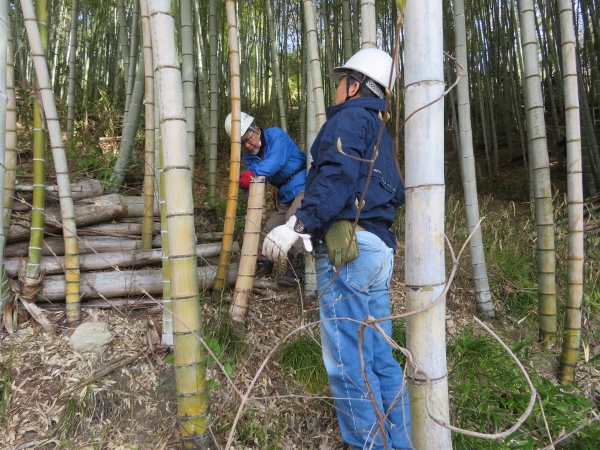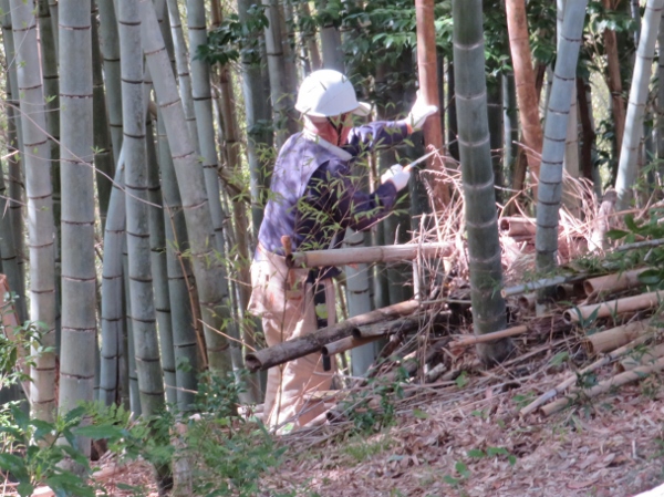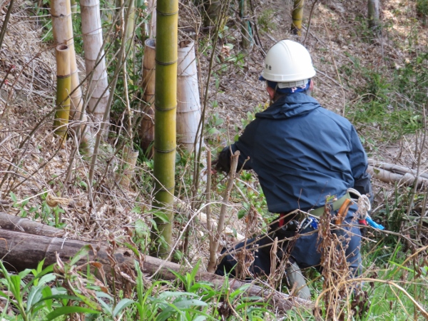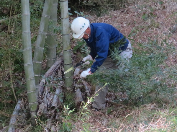 作業は 大石垣周辺の竹林から変わり 今回から八幡東公園の竹林の整備です。急斜面の場所が多く苦しい作業となりました。