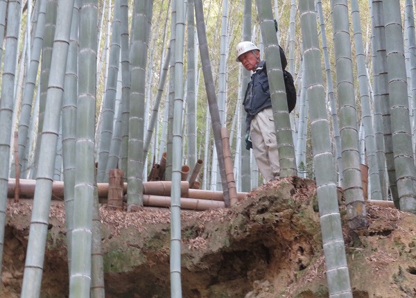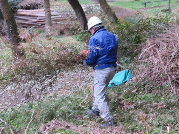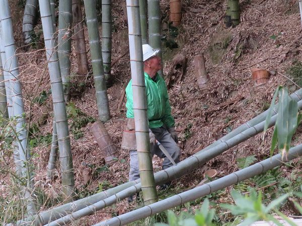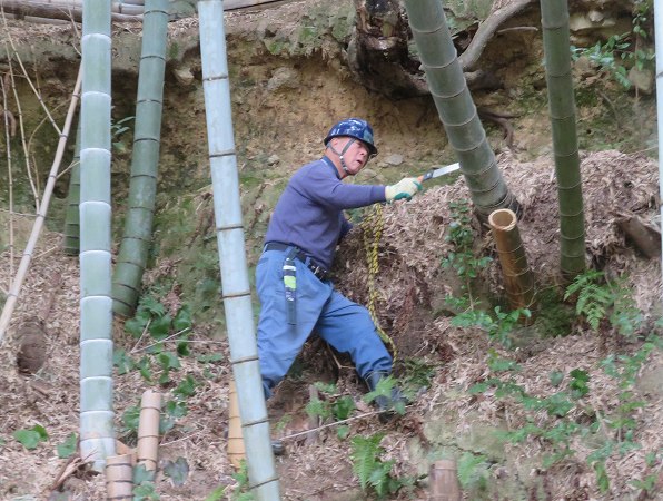 三寒四温と言われますが この日は3月下旬を感じる温かい一日でした。八幡公園管理棟前の梅も咲き出しています。 この日の活動は、前回と同じ場所です。今年は枯れ竹が多く同じ場所での活動となりました。