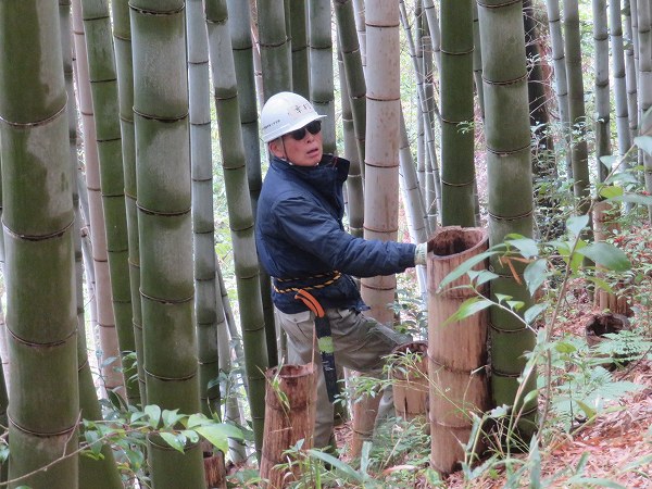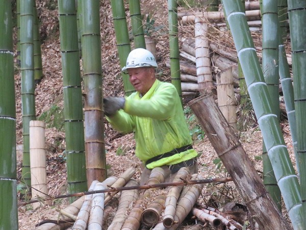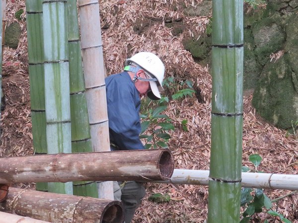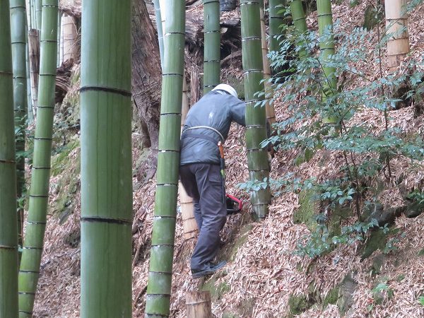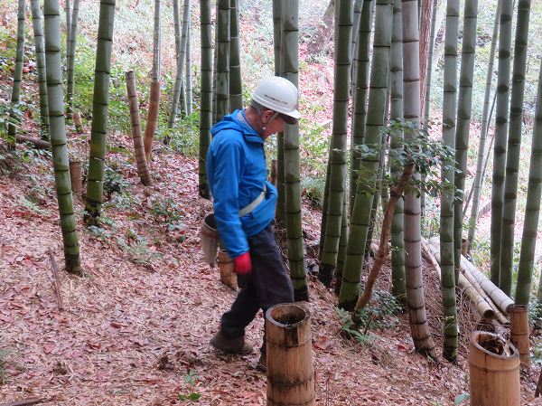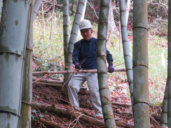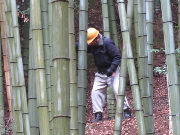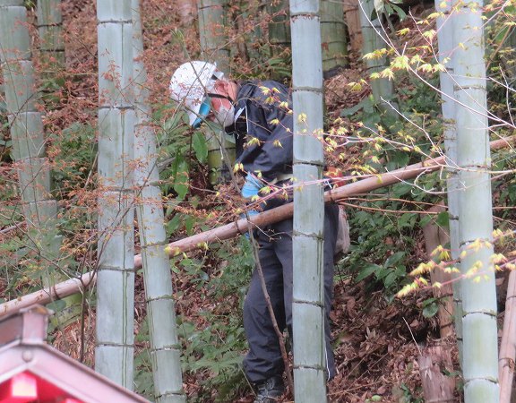 今日の定例作業は 今年に入り竹林の整備を始めてから順次進めてきて やっとシイタケ林まで来ました。杉春稲荷の山側です。直登階段を昇り竹やぶに入ります。いつものように枯れ竹や不要竹の伐採を行いました。
