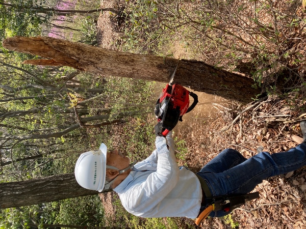 立ち枯れ松が数本有りそれを伐倒処理しました。チェンソーを使い10時半頃に作業終了。
