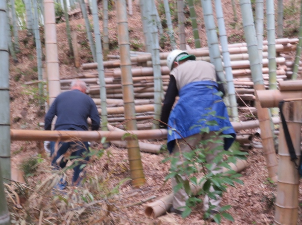 今回で今期の竹林の整備は終わり、次回からはコナラ林他の整備となります。最後のこの日は前回と同じ東公園沿いの竹林の整備です。明日のタケノコ堀大会に向けて 心配していたタケノコもたくさん出てきています。