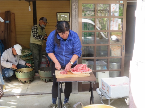 その間に 米20kg、肉8㎏、タケノコ3本を使用しての昼食のカレーの準備を。11時30分すこし前に仕上がり各家族ごとに食事を楽しんでいただきました。