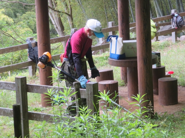 途中休憩を10時ごろに東屋でとり、後半の作業を続けました。